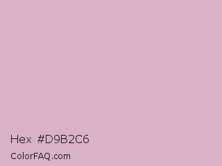 Hex #d9b2c6 Color is a light rose color and the nearest color is Blossom #dcb4bc. Hex code #d9b2c6 and RGB value is rgb(217,178,198). In RGB color space, this color is composed of 85% red, 70% green, 78% blue, In CMYK color space, this color is composed of 0% cyan, 18% magenta, 9% yellow , 15% black , In HSL color space, this color has a hue angle of 329° , 34% saturation and 77% lightness.
