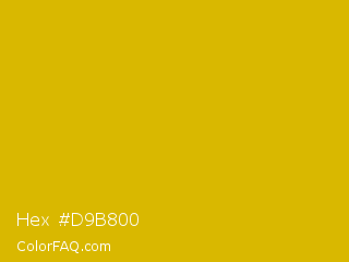 Hex #d9b800 Color is a normal yellow color and the nearest color is Galliano #dcb20c. Hex code #d9b800 and RGB value is rgb(217,184,0). In RGB color space, this color is composed of 85% red, 72% green, 0% blue, In CMYK color space, this color is composed of 0% cyan, 15% magenta, 100% yellow , 15% black , In HSL color space, this color has a hue angle of 51° , 100% saturation and 43% lightness.
