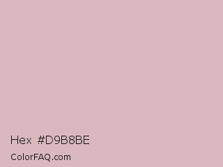 Hex #d9b8be Color is a light red color and the nearest color is Blossom #dcb4bc. Hex code #d9b8be and RGB value is rgb(217,184,190). In RGB color space, this color is composed of 85% red, 72% green, 75% blue, In CMYK color space, this color is composed of 0% cyan, 15% magenta, 12% yellow , 15% black , In HSL color space, this color has a hue angle of 349° , 30% saturation and 79% lightness.