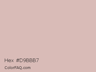 Hex #d9bbb7 Color is a light red color and the nearest color is Blossom #dcb4bc. Hex code #d9bbb7 and RGB value is rgb(217,187,183). In RGB color space, this color is composed of 85% red, 73% green, 72% blue, In CMYK color space, this color is composed of 0% cyan, 14% magenta, 16% yellow , 15% black , In HSL color space, this color has a hue angle of 7° , 31% saturation and 78% lightness.
