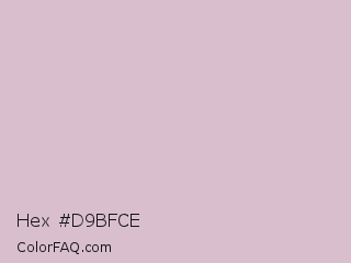 Hex #d9bfce Color is a light magenta color and the nearest color is Maverick #d8c2d5. Hex code #d9bfce and RGB value is rgb(217,191,206). In RGB color space, this color is composed of 85% red, 75% green, 81% blue, In CMYK color space, this color is composed of 0% cyan, 12% magenta, 5% yellow , 15% black , In HSL color space, this color has a hue angle of 325° , 25% saturation and 80% lightness.