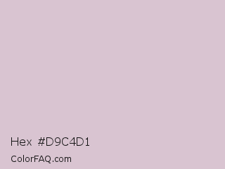 Hex #d9c4d1 Color is a very light magenta color and the nearest color is Maverick #d8c2d5. Hex code #d9c4d1 and RGB value is rgb(217,196,209). In RGB color space, this color is composed of 85% red, 77% green, 82% blue, In CMYK color space, this color is composed of 0% cyan, 10% magenta, 4% yellow , 15% black , In HSL color space, this color has a hue angle of 323° , 22% saturation and 81% lightness.