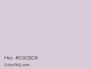 Hex #d9cbd8 Color is a very light magenta color and the nearest color is Languid Lavender #d6cadd. Hex code #d9cbd8 and RGB value is rgb(217,203,216). In RGB color space, this color is composed of 85% red, 80% green, 85% blue, In CMYK color space, this color is composed of 0% cyan, 6% magenta, 0% yellow , 15% black , In HSL color space, this color has a hue angle of 304° , 16% saturation and 82% lightness.