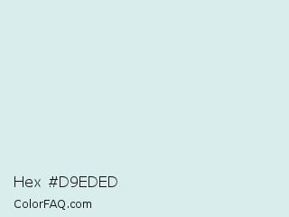 Hex #d9eded Color is a very light cyan color and the nearest color is Swans Down #dcf0ea. Hex code #d9eded and RGB value is rgb(217,237,237). In RGB color space, this color is composed of 85% red, 93% green, 93% blue, In CMYK color space, this color is composed of 8% cyan, 0% magenta, 0% yellow , 7% black , In HSL color space, this color has a hue angle of 180° , 36% saturation and 89% lightness.