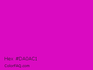 Hex #da0ac1 Color is a normal magenta color and the nearest color is Deep Magenta #cc00cc. Hex code #da0ac1 and RGB value is rgb(218,10,193). In RGB color space, this color is composed of 85% red, 4% green, 76% blue, In CMYK color space, this color is composed of 0% cyan, 95% magenta, 11% yellow , 15% black , In HSL color space, this color has a hue angle of 307° , 91% saturation and 45% lightness.
