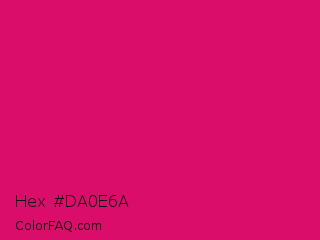 Hex #da0e6a Color is a normal rose color and the nearest color is Dogwood Rose #d71868. Hex code #da0e6a and RGB value is rgb(218,14,106). In RGB color space, this color is composed of 85% red, 5% green, 42% blue, In CMYK color space, this color is composed of 0% cyan, 94% magenta, 51% yellow , 15% black , In HSL color space, this color has a hue angle of 333° , 88% saturation and 45% lightness.