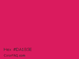 Hex #da1b5e Color is a normal rose color and the nearest color is Dogwood Rose #d71868. Hex code #da1b5e and RGB value is rgb(218,27,94). In RGB color space, this color is composed of 85% red, 11% green, 37% blue, In CMYK color space, this color is composed of 0% cyan, 88% magenta, 57% yellow , 15% black , In HSL color space, this color has a hue angle of 339° , 78% saturation and 48% lightness.