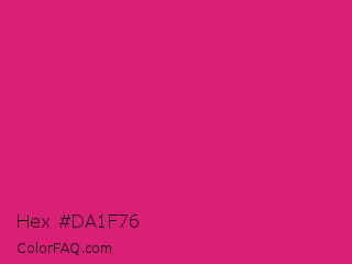 Hex #da1f76 Color is a normal rose color and the nearest color is Vivid Cerise #da1d81. Hex code #da1f76 and RGB value is rgb(218,31,118). In RGB color space, this color is composed of 85% red, 12% green, 46% blue, In CMYK color space, this color is composed of 0% cyan, 86% magenta, 46% yellow , 15% black , In HSL color space, this color has a hue angle of 332° , 75% saturation and 49% lightness.