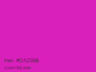 Hex #da20bb Color is a normal magenta color and the nearest color is Steel Pink #cc33cc. Hex code #da20bb and RGB value is rgb(218,32,187). In RGB color space, this color is composed of 85% red, 13% green, 73% blue, In CMYK color space, this color is composed of 0% cyan, 85% magenta, 14% yellow , 15% black , In HSL color space, this color has a hue angle of 310° , 74% saturation and 49% lightness.