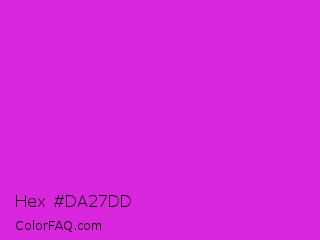 Hex #da27dd Color is a normal magenta color and the nearest color is Steel Pink #cc33cc. Hex code #da27dd and RGB value is rgb(218,39,221). In RGB color space, this color is composed of 85% red, 15% green, 87% blue, In CMYK color space, this color is composed of 1% cyan, 82% magenta, 0% yellow , 13% black , In HSL color space, this color has a hue angle of 299° , 73% saturation and 51% lightness.