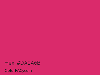 Hex #da2a6b Color is a normal rose color and the nearest color is Razzmatazz #e3256b. Hex code #da2a6b and RGB value is rgb(218,42,107). In RGB color space, this color is composed of 85% red, 16% green, 42% blue, In CMYK color space, this color is composed of 0% cyan, 81% magenta, 51% yellow , 15% black , In HSL color space, this color has a hue angle of 338° , 70% saturation and 51% lightness.