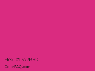 Hex #da2b80 Color is a normal rose color and the nearest color is Cerise #da3287. Hex code #da2b80 and RGB value is rgb(218,43,128). In RGB color space, this color is composed of 85% red, 17% green, 50% blue, In CMYK color space, this color is composed of 0% cyan, 80% magenta, 41% yellow , 15% black , In HSL color space, this color has a hue angle of 331° , 70% saturation and 51% lightness.