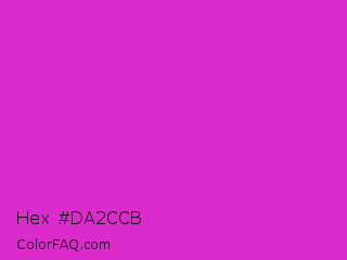 Hex #da2ccb Color is a normal magenta color and the nearest color is Steel Pink #cc33cc. Hex code #da2ccb and RGB value is rgb(218,44,203). In RGB color space, this color is composed of 85% red, 17% green, 80% blue, In CMYK color space, this color is composed of 0% cyan, 80% magenta, 7% yellow , 15% black , In HSL color space, this color has a hue angle of 305° , 70% saturation and 51% lightness.
