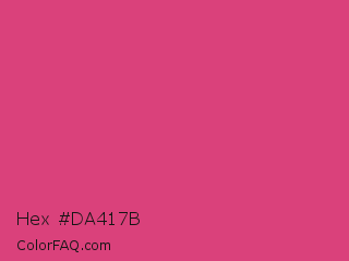 Hex #da417b Color is a normal rose color and the nearest color is Magenta Pantone #d0417e. Hex code #da417b and RGB value is rgb(218,65,123). In RGB color space, this color is composed of 85% red, 25% green, 48% blue, In CMYK color space, this color is composed of 0% cyan, 70% magenta, 44% yellow , 15% black , In HSL color space, this color has a hue angle of 337° , 67% saturation and 55% lightness.
