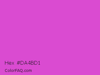 Hex #da4bd1 Color is a normal magenta color and the nearest color is Steel Pink #cc33cc. Hex code #da4bd1 and RGB value is rgb(218,75,209). In RGB color space, this color is composed of 85% red, 29% green, 82% blue, In CMYK color space, this color is composed of 0% cyan, 66% magenta, 4% yellow , 15% black , In HSL color space, this color has a hue angle of 304° , 66% saturation and 57% lightness.