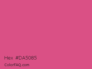 Hex #da5085 Color is a normal rose color and the nearest color is Fandango Pink #de5285. Hex code #da5085 and RGB value is rgb(218,80,133). In RGB color space, this color is composed of 85% red, 31% green, 52% blue, In CMYK color space, this color is composed of 0% cyan, 63% magenta, 39% yellow , 15% black , In HSL color space, this color has a hue angle of 337° , 65% saturation and 58% lightness.