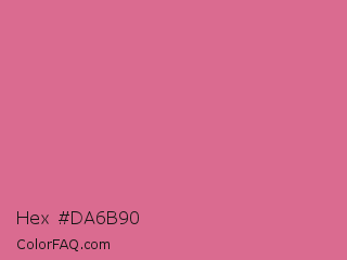 Hex #da6b90 Color is a light rose color and the nearest color is Pale Red Violet #db7093. Hex code #da6b90 and RGB value is rgb(218,107,144). In RGB color space, this color is composed of 85% red, 42% green, 56% blue, In CMYK color space, this color is composed of 0% cyan, 51% magenta, 34% yellow , 15% black , In HSL color space, this color has a hue angle of 340° , 60% saturation and 64% lightness.