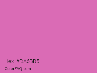 Hex #da6bb5 Color is a light magenta color and the nearest color is Sky Magenta #cf71af. Hex code #da6bb5 and RGB value is rgb(218,107,181). In RGB color space, this color is composed of 85% red, 42% green, 71% blue, In CMYK color space, this color is composed of 0% cyan, 51% magenta, 17% yellow , 15% black , In HSL color space, this color has a hue angle of 320° , 60% saturation and 64% lightness.