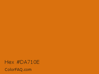 Hex #da710e Color is a normal orange color and the nearest color is Christine #e7730a. Hex code #da710e and RGB value is rgb(218,113,14). In RGB color space, this color is composed of 85% red, 44% green, 5% blue, In CMYK color space, this color is composed of 0% cyan, 48% magenta, 94% yellow , 15% black , In HSL color space, this color has a hue angle of 29° , 88% saturation and 45% lightness.