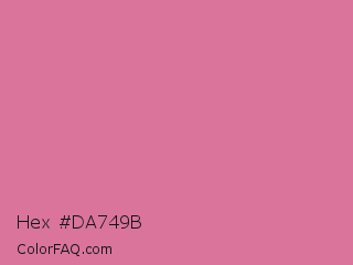 Hex #da749b Color is a light rose color and the nearest color is Thulian Pink #de6fa1. Hex code #da749b and RGB value is rgb(218,116,155). In RGB color space, this color is composed of 85% red, 45% green, 61% blue, In CMYK color space, this color is composed of 0% cyan, 47% magenta, 29% yellow , 15% black , In HSL color space, this color has a hue angle of 337° , 58% saturation and 65% lightness.