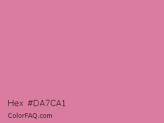 Hex #da7ca1 Color is a light rose color and the nearest color is Wild Orchid #d470a2. Hex code #da7ca1 and RGB value is rgb(218,124,161). In RGB color space, this color is composed of 85% red, 49% green, 63% blue, In CMYK color space, this color is composed of 0% cyan, 43% magenta, 26% yellow , 15% black , In HSL color space, this color has a hue angle of 336° , 56% saturation and 67% lightness.