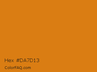 Hex #da7d13 Color is a normal orange color and the nearest color is Meteor #d07d12. Hex code #da7d13 and RGB value is rgb(218,125,19). In RGB color space, this color is composed of 85% red, 49% green, 7% blue, In CMYK color space, this color is composed of 0% cyan, 43% magenta, 91% yellow , 15% black , In HSL color space, this color has a hue angle of 32° , 84% saturation and 46% lightness.