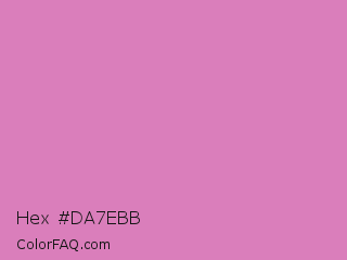 Hex #da7ebb Color is a light magenta color and the nearest color is Middle Purple #d982b5. Hex code #da7ebb and RGB value is rgb(218,126,187). In RGB color space, this color is composed of 85% red, 49% green, 73% blue, In CMYK color space, this color is composed of 0% cyan, 42% magenta, 14% yellow , 15% black , In HSL color space, this color has a hue angle of 320° , 55% saturation and 67% lightness.