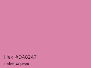 Hex #da82a7 Color is a light rose color and the nearest color is Middle Purple #d982b5. Hex code #da82a7 and RGB value is rgb(218,130,167). In RGB color space, this color is composed of 85% red, 51% green, 65% blue, In CMYK color space, this color is composed of 0% cyan, 40% magenta, 23% yellow , 15% black , In HSL color space, this color has a hue angle of 335° , 54% saturation and 68% lightness.