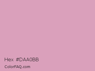 Hex #daa0bb Color is a light rose color and the nearest color is Kobi #e79fc4. Hex code #daa0bb and RGB value is rgb(218,160,187). In RGB color space, this color is composed of 85% red, 63% green, 73% blue, In CMYK color space, this color is composed of 0% cyan, 27% magenta, 14% yellow , 15% black , In HSL color space, this color has a hue angle of 332° , 44% saturation and 74% lightness.