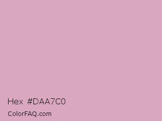 Hex #daa7c0 Color is a light rose color and the nearest color is Blossom #dcb4bc. Hex code #daa7c0 and RGB value is rgb(218,167,192). In RGB color space, this color is composed of 85% red, 65% green, 75% blue, In CMYK color space, this color is composed of 0% cyan, 23% magenta, 12% yellow , 15% black , In HSL color space, this color has a hue angle of 331° , 41% saturation and 75% lightness.