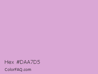 Hex #daa7d5 Color is a light magenta color and the nearest color is Medium Lavender Magenta #dda0dd. Hex code #daa7d5 and RGB value is rgb(218,167,213). In RGB color space, this color is composed of 85% red, 65% green, 84% blue, In CMYK color space, this color is composed of 0% cyan, 23% magenta, 2% yellow , 15% black , In HSL color space, this color has a hue angle of 306° , 41% saturation and 75% lightness.
