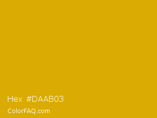 Hex #daab03 Color is a normal yellow color and the nearest color is Galliano #dcb20c. Hex code #daab03 and RGB value is rgb(218,171,3). In RGB color space, this color is composed of 85% red, 67% green, 1% blue, In CMYK color space, this color is composed of 0% cyan, 22% magenta, 99% yellow , 15% black , In HSL color space, this color has a hue angle of 47° , 97% saturation and 43% lightness.