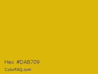 Hex #dab709 Color is a normal yellow color and the nearest color is Galliano #dcb20c. Hex code #dab709 and RGB value is rgb(218,183,9). In RGB color space, this color is composed of 85% red, 72% green, 4% blue, In CMYK color space, this color is composed of 0% cyan, 16% magenta, 96% yellow , 15% black , In HSL color space, this color has a hue angle of 50° , 92% saturation and 45% lightness.