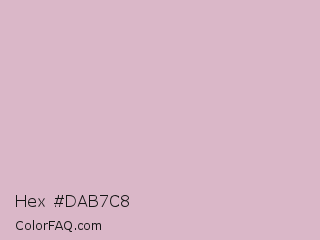Hex #dab7c8 Color is a light rose color and the nearest color is Pink Lavender #d8b2d1. Hex code #dab7c8 and RGB value is rgb(218,183,200). In RGB color space, this color is composed of 85% red, 72% green, 78% blue, In CMYK color space, this color is composed of 0% cyan, 16% magenta, 8% yellow , 15% black , In HSL color space, this color has a hue angle of 331° , 32% saturation and 79% lightness.