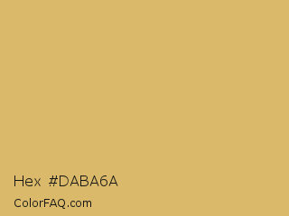 Hex #daba6a Color is a light orange color and the nearest color is Apache #dfbe6f. Hex code #daba6a and RGB value is rgb(218,186,106). In RGB color space, this color is composed of 85% red, 73% green, 42% blue, In CMYK color space, this color is composed of 0% cyan, 15% magenta, 51% yellow , 15% black , In HSL color space, this color has a hue angle of 43° , 60% saturation and 64% lightness.