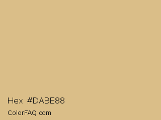 Hex #dabe88 Color is a light orange color and the nearest color is Burlywood #deb887. Hex code #dabe88 and RGB value is rgb(218,190,136). In RGB color space, this color is composed of 85% red, 75% green, 53% blue, In CMYK color space, this color is composed of 0% cyan, 13% magenta, 38% yellow , 15% black , In HSL color space, this color has a hue angle of 40° , 53% saturation and 69% lightness.