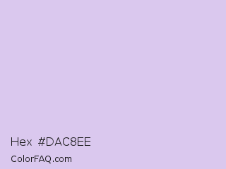 Hex #dac8ee Color is a very light violet color and the nearest color is Moon Raker #d6cef6. Hex code #dac8ee and RGB value is rgb(218,200,238). In RGB color space, this color is composed of 85% red, 78% green, 93% blue, In CMYK color space, this color is composed of 8% cyan, 16% magenta, 0% yellow , 7% black , In HSL color space, this color has a hue angle of 268° , 53% saturation and 86% lightness.