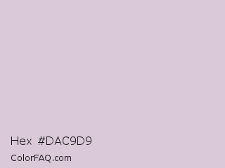 Hex #dac9d9 Color is a very light magenta color and the nearest color is Languid Lavender #d6cadd. Hex code #dac9d9 and RGB value is rgb(218,201,217). In RGB color space, this color is composed of 85% red, 79% green, 85% blue, In CMYK color space, this color is composed of 0% cyan, 8% magenta, 0% yellow , 15% black , In HSL color space, this color has a hue angle of 304° , 19% saturation and 82% lightness.