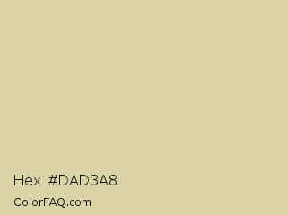 Hex #dad3a8 Color is a light yellow color and the nearest color is Sapling #ded4a4. Hex code #dad3a8 and RGB value is rgb(218,211,168). In RGB color space, this color is composed of 85% red, 83% green, 66% blue, In CMYK color space, this color is composed of 0% cyan, 3% magenta, 23% yellow , 15% black , In HSL color space, this color has a hue angle of 52° , 40% saturation and 76% lightness.