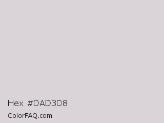 Hex #dad3d8 Color is a very light magenta color and the nearest color is Swiss Coffee #ddd6d5. Hex code #dad3d8 and RGB value is rgb(218,211,216). In RGB color space, this color is composed of 85% red, 83% green, 85% blue, In CMYK color space, this color is composed of 0% cyan, 3% magenta, 1% yellow , 15% black , In HSL color space, this color has a hue angle of 317° , 9% saturation and 84% lightness.