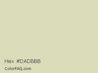 Hex #dadbbb Color is a light yellow color and the nearest color is Tana #d9dcc1. Hex code #dadbbb and RGB value is rgb(218,219,187). In RGB color space, this color is composed of 85% red, 86% green, 73% blue, In CMYK color space, this color is composed of 0% cyan, 0% magenta, 15% yellow , 14% black , In HSL color space, this color has a hue angle of 62° , 31% saturation and 80% lightness.