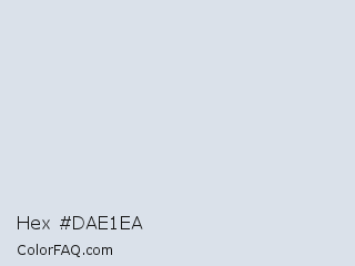 Hex #dae1ea Color is a very light blue color and the nearest color is Geyser #d4dfe2. Hex code #dae1ea and RGB value is rgb(218,225,234). In RGB color space, this color is composed of 85% red, 88% green, 92% blue, In CMYK color space, this color is composed of 7% cyan, 4% magenta, 0% yellow , 8% black , In HSL color space, this color has a hue angle of 214° , 28% saturation and 89% lightness.