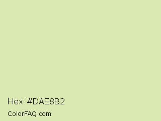 Hex #dae8b2 Color is a light lime color and the nearest color is Caper #dcedb4. Hex code #dae8b2 and RGB value is rgb(218,232,178). In RGB color space, this color is composed of 85% red, 91% green, 70% blue, In CMYK color space, this color is composed of 6% cyan, 0% magenta, 23% yellow , 9% black , In HSL color space, this color has a hue angle of 76° , 54% saturation and 80% lightness.