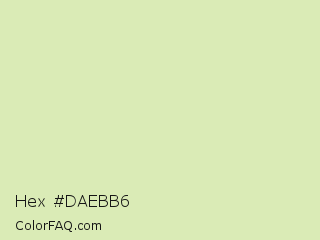 Hex #daebb6 Color is a very light lime color and the nearest color is Caper #dcedb4. Hex code #daebb6 and RGB value is rgb(218,235,182). In RGB color space, this color is composed of 85% red, 92% green, 71% blue, In CMYK color space, this color is composed of 7% cyan, 0% magenta, 23% yellow , 8% black , In HSL color space, this color has a hue angle of 79° , 57% saturation and 82% lightness.