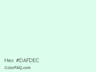 Hex #dafdec Color is a very light green color and the nearest color is White Ice #ddf9f1. Hex code #dafdec and RGB value is rgb(218,253,236). In RGB color space, this color is composed of 85% red, 99% green, 93% blue, In CMYK color space, this color is composed of 14% cyan, 0% magenta, 7% yellow , 1% black , In HSL color space, this color has a hue angle of 151° , 90% saturation and 92% lightness.