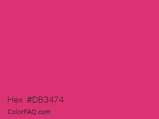 Hex #db3474 Color is a normal rose color and the nearest color is Telemagenta #cf3476. Hex code #db3474 and RGB value is rgb(219,52,116). In RGB color space, this color is composed of 86% red, 20% green, 45% blue, In CMYK color space, this color is composed of 0% cyan, 76% magenta, 47% yellow , 14% black , In HSL color space, this color has a hue angle of 337° , 70% saturation and 53% lightness.