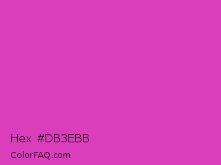 Hex #db3ebb Color is a normal magenta color and the nearest color is Steel Pink #cc33cc. Hex code #db3ebb and RGB value is rgb(219,62,187). In RGB color space, this color is composed of 86% red, 24% green, 73% blue, In CMYK color space, this color is composed of 0% cyan, 72% magenta, 15% yellow , 14% black , In HSL color space, this color has a hue angle of 312° , 69% saturation and 55% lightness.