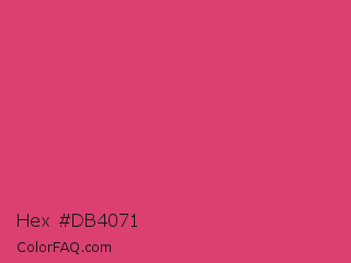 Hex #db4071 Color is a normal rose color and the nearest color is Cabaret #d94972. Hex code #db4071 and RGB value is rgb(219,64,113). In RGB color space, this color is composed of 86% red, 25% green, 44% blue, In CMYK color space, this color is composed of 0% cyan, 71% magenta, 48% yellow , 14% black , In HSL color space, this color has a hue angle of 341° , 68% saturation and 55% lightness.