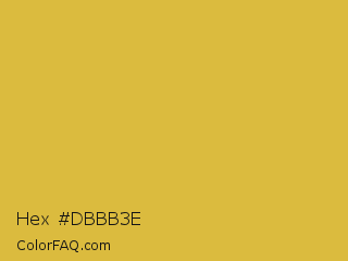 Hex #dbbb3e Color is a normal yellow color and the nearest color is Anzac #e0b646. Hex code #dbbb3e and RGB value is rgb(219,187,62). In RGB color space, this color is composed of 86% red, 73% green, 24% blue, In CMYK color space, this color is composed of 0% cyan, 15% magenta, 72% yellow , 14% black , In HSL color space, this color has a hue angle of 48° , 69% saturation and 55% lightness.