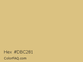 Hex #dbc281 Color is a light orange color and the nearest color is Burlywood #deb887. Hex code #dbc281 and RGB value is rgb(219,194,129). In RGB color space, this color is composed of 86% red, 76% green, 51% blue, In CMYK color space, this color is composed of 0% cyan, 11% magenta, 41% yellow , 14% black , In HSL color space, this color has a hue angle of 43° , 56% saturation and 68% lightness.